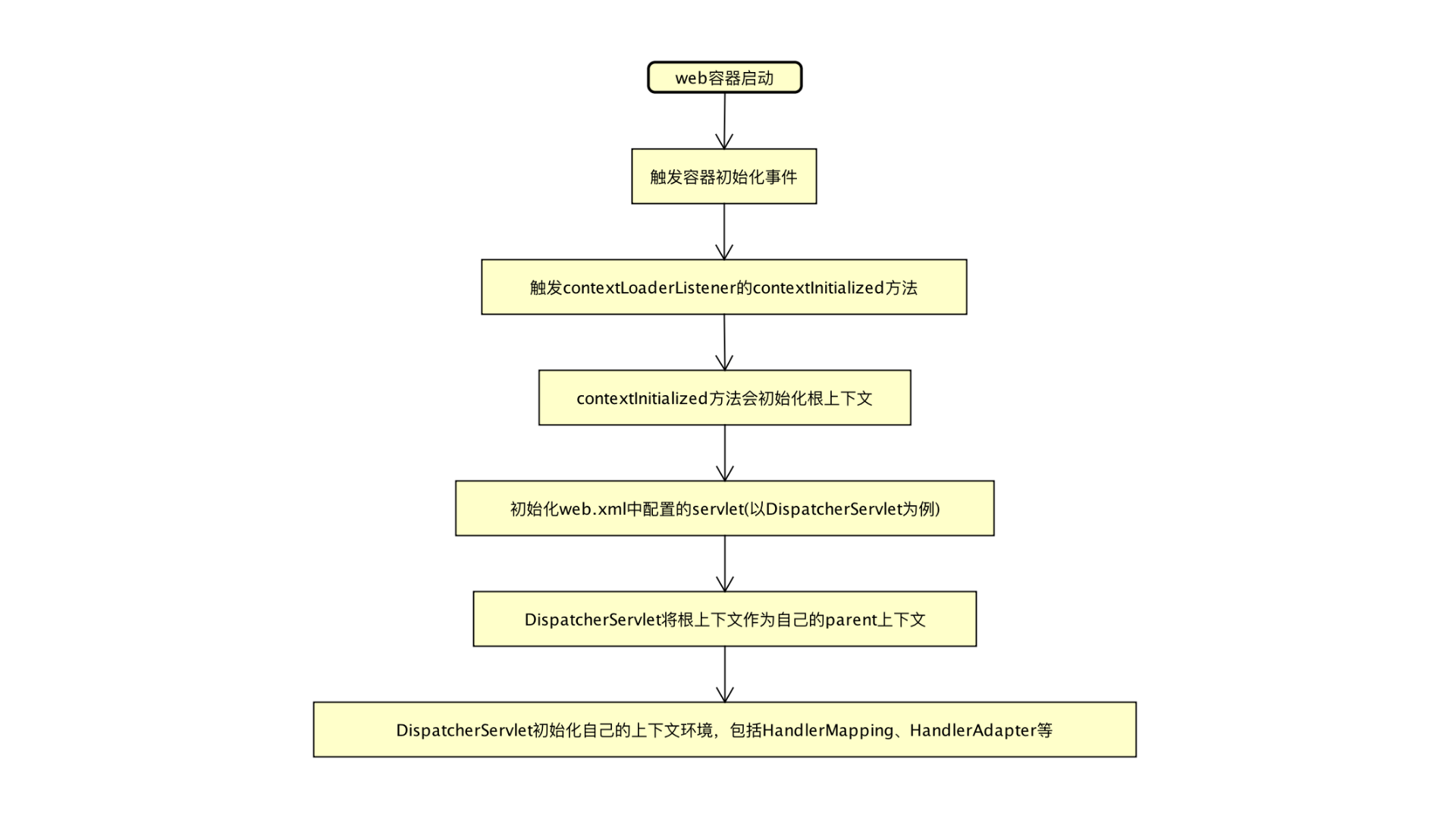 在初始化部分中,其中初始化根上下文是在ContextLoaderListener中执行,以及spring IoC容器的初始化部分也是在这一块。而DispatcherServlet的初始化则是通过回调servlet的init方法来进行初始化的。
