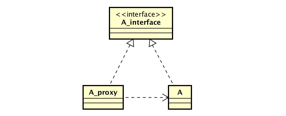 其中A为真实对象,A_proxy为代理对象,A与A_proxy实现了共同的接口A_interface。