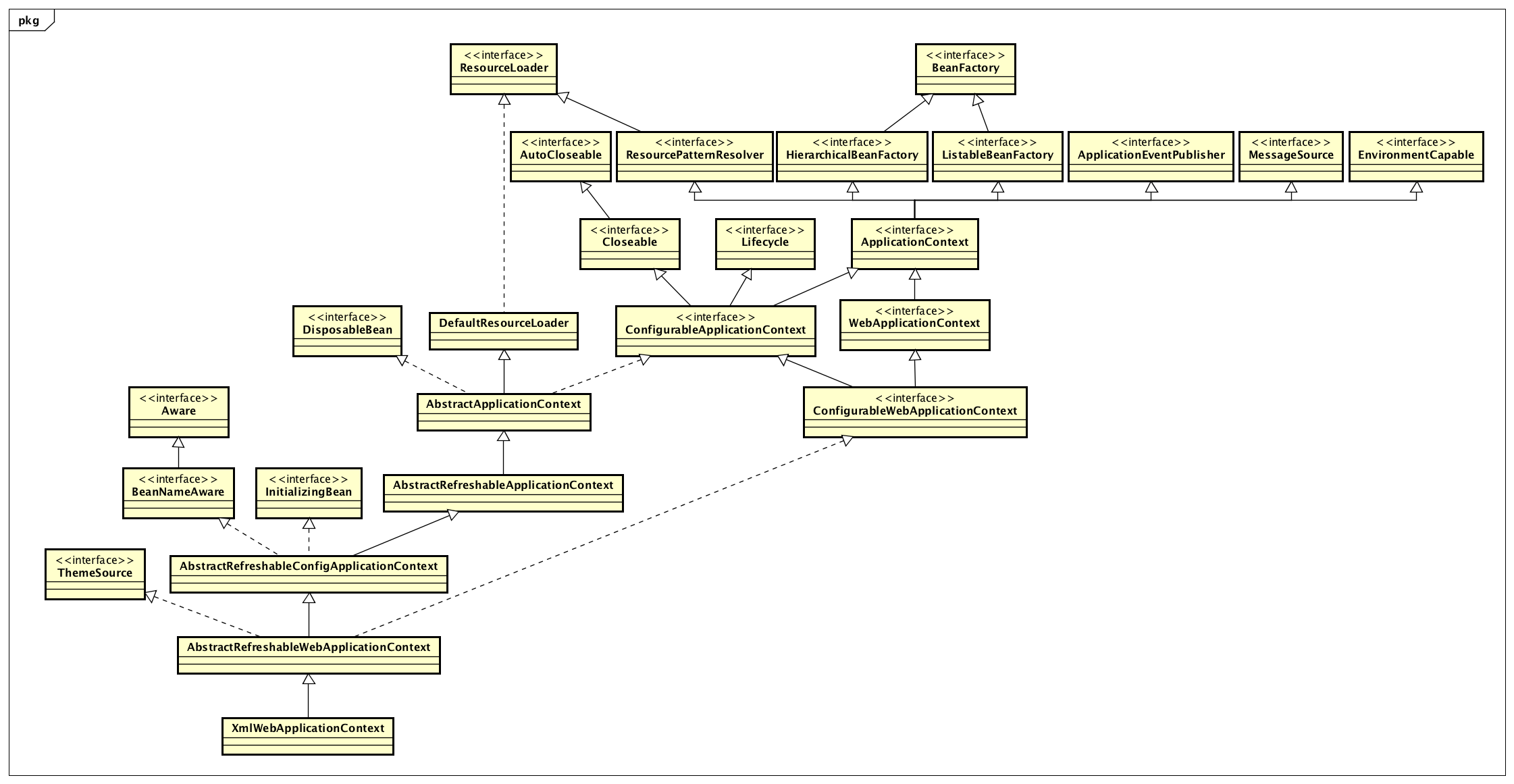 // BeanFactory interface not registered as resolvable type in a plain factory. // MessageSource registered (and found for autowiring) as a bean. beanFactory.registerResolvableDependency(BeanFactory.class, beanFactory); beanFactory.registerResolvableDependency(ResourceLoader.class, this); beanFactory.registerResolvableDependency(ApplicationEventPublisher.class, this); beanFactory.registerResolvableDependency(ApplicationContext.class, this);